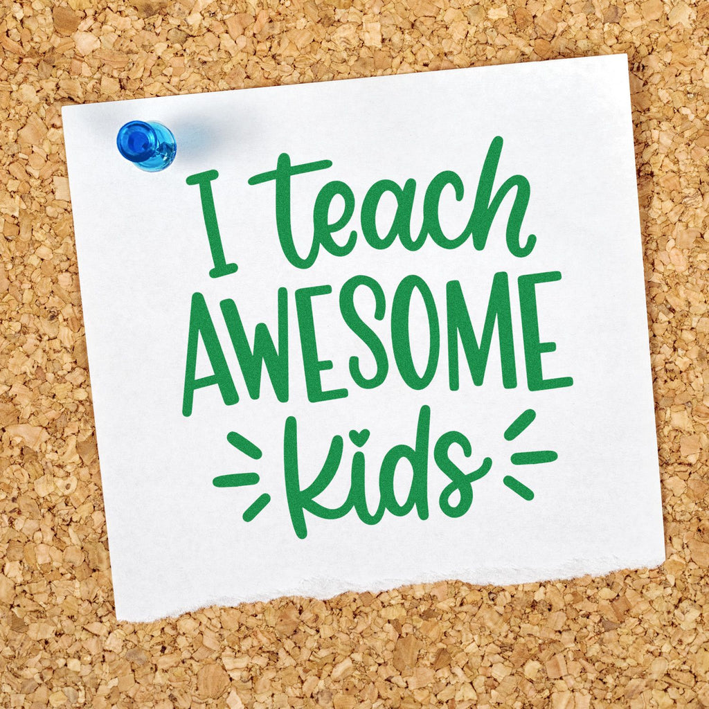 Nurturing motivation becomes effortless with a bold, hand-lettered declaration that reads “I teach AWESOME kids.” Not only is the message heartwarming, but the playful black lettering on a white background with radiating accent lines adds a celebratory punch to worksheets, planners, and handmade certificates.