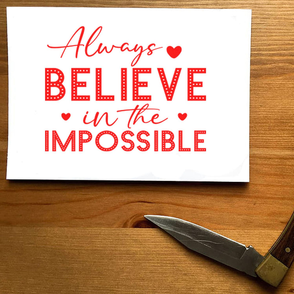 - Crisp: Precision laser-engraved design delivers razor-sharp impressions every time so your “Always Believe in the Impossible” sentiment pops with professional clarity.