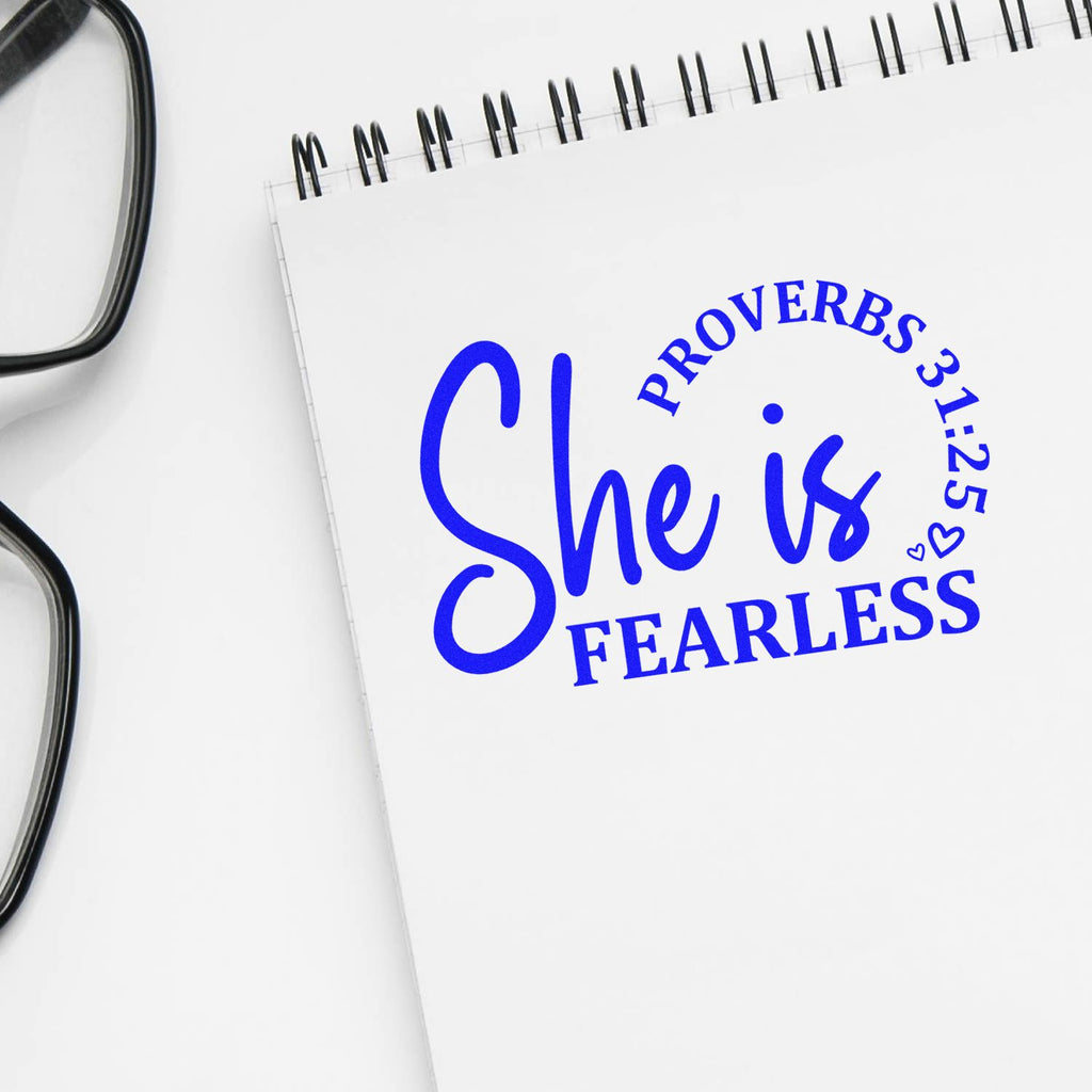 - Inspire: Stamp “She is FEARLESS” backed by Proverbs 31:25 to spark daily courage and virtuous reflection—beautiful calligraphy + strong serif design that elevates devotion time.