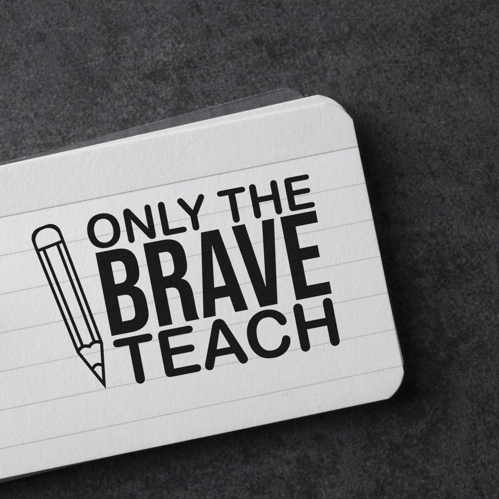 Special A bold black-and-white design features a stylized pencil outline alongside strong uppercase text. Special The centerpiece “ONLY THE BRAVE TEACH” delivers a minimal, impactful message at a glance.
