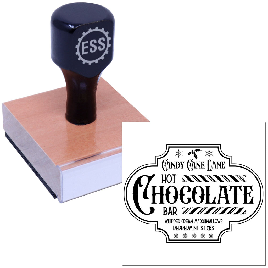 Celebrate the season with a charming sign that announces your Candy Cane Lane hot chocolate bar, framed by classic candy-cane stripes and decorated with holly leaves and snowflakes. A must-have for holiday events and seasonal displays!