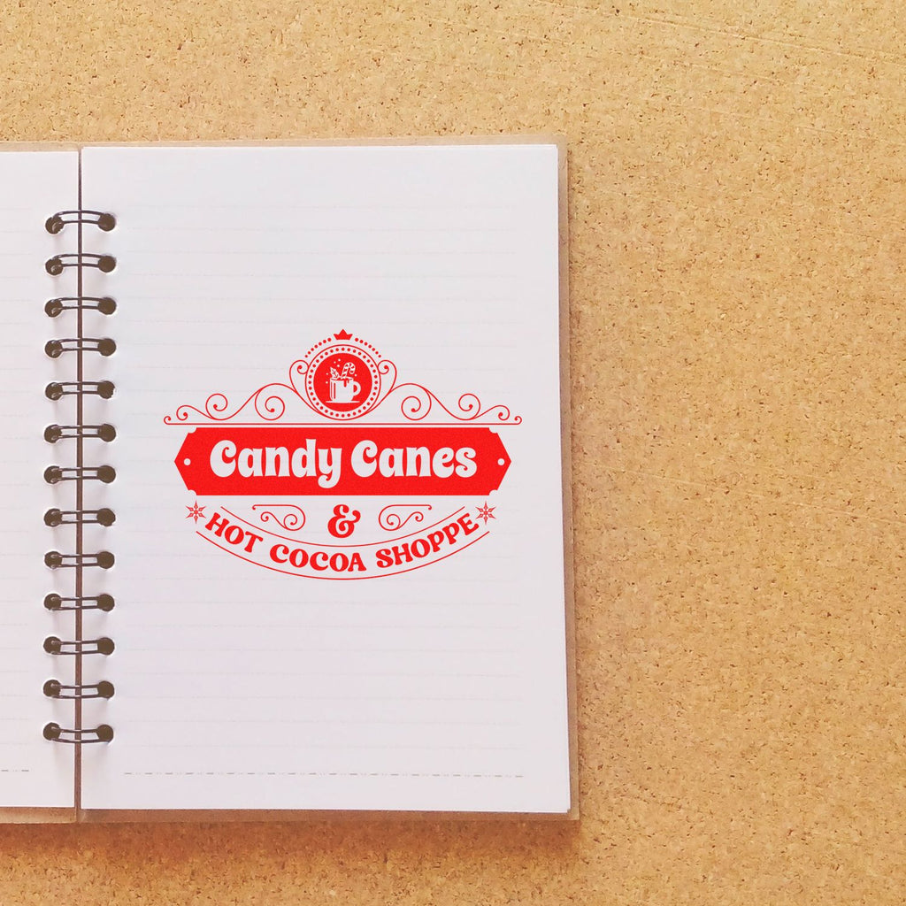 - Charming: The 1-5/8" square Candy Cocoa Corner design features ornate scrollwork, a steaming mug with candy canes, snowflake accents and “Candy Canes & Hot Cocoa Shoppe” ribbon—adds seasonal flair to favors and packaging.