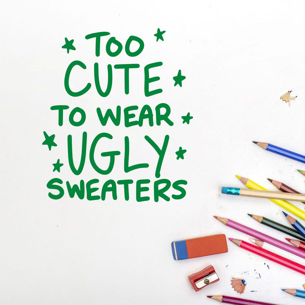 - Cozy: Instantly add warm, festive charm to cards and tags with the “Too Cute to Wear Ugly Sweaters” design sized perfectly at 1-5/8" square for focal accents and layered holiday layouts.