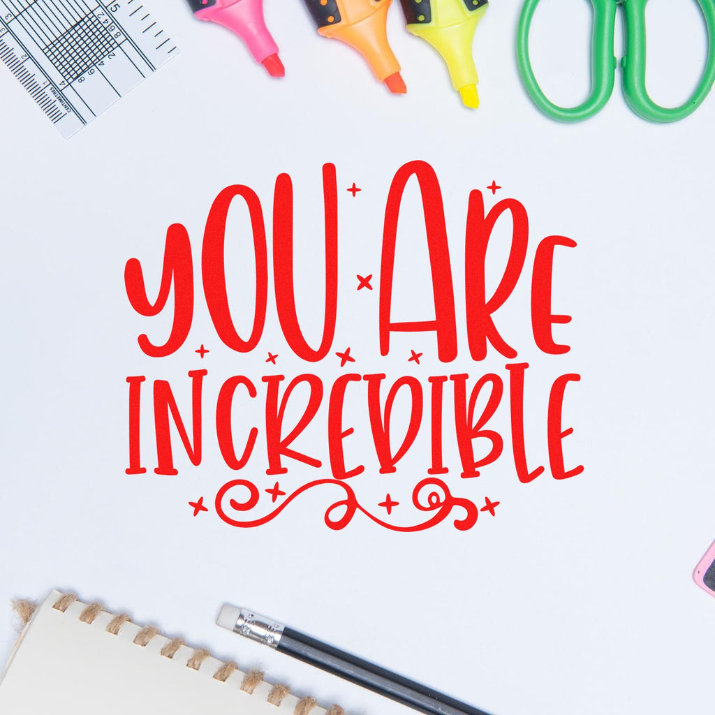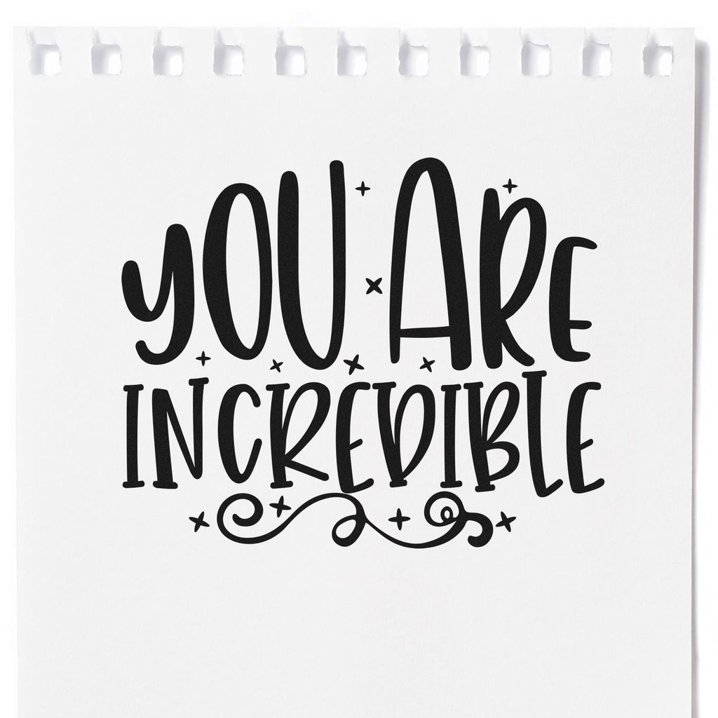 Hand-drawn message declares “You Are Incredible” with bold, playful lettering, tiny starbursts, and whimsical flourishes that spark celebration.