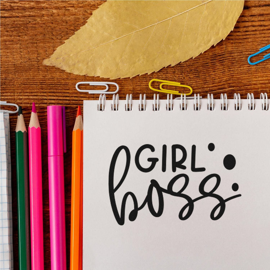 - Recognition: Honor female leaders instantly: stamp promotion cards, mentorship notes, and awards with the bold “GIRL boss” message to create consistent, professional recognition that boosts morale and highlights high-potential talent.