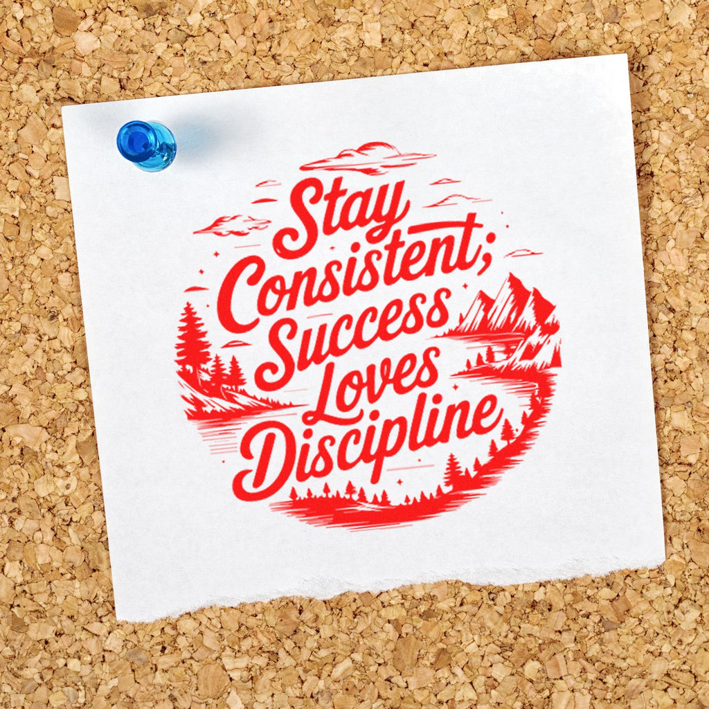 - Create: Impress customers with a handmade look—use the 1-5/8" square motif featuring mountains, trees, and the “Stay Consistent; Success Loves Discipline” crest for memorable labels, thank-you notes, and product tags.