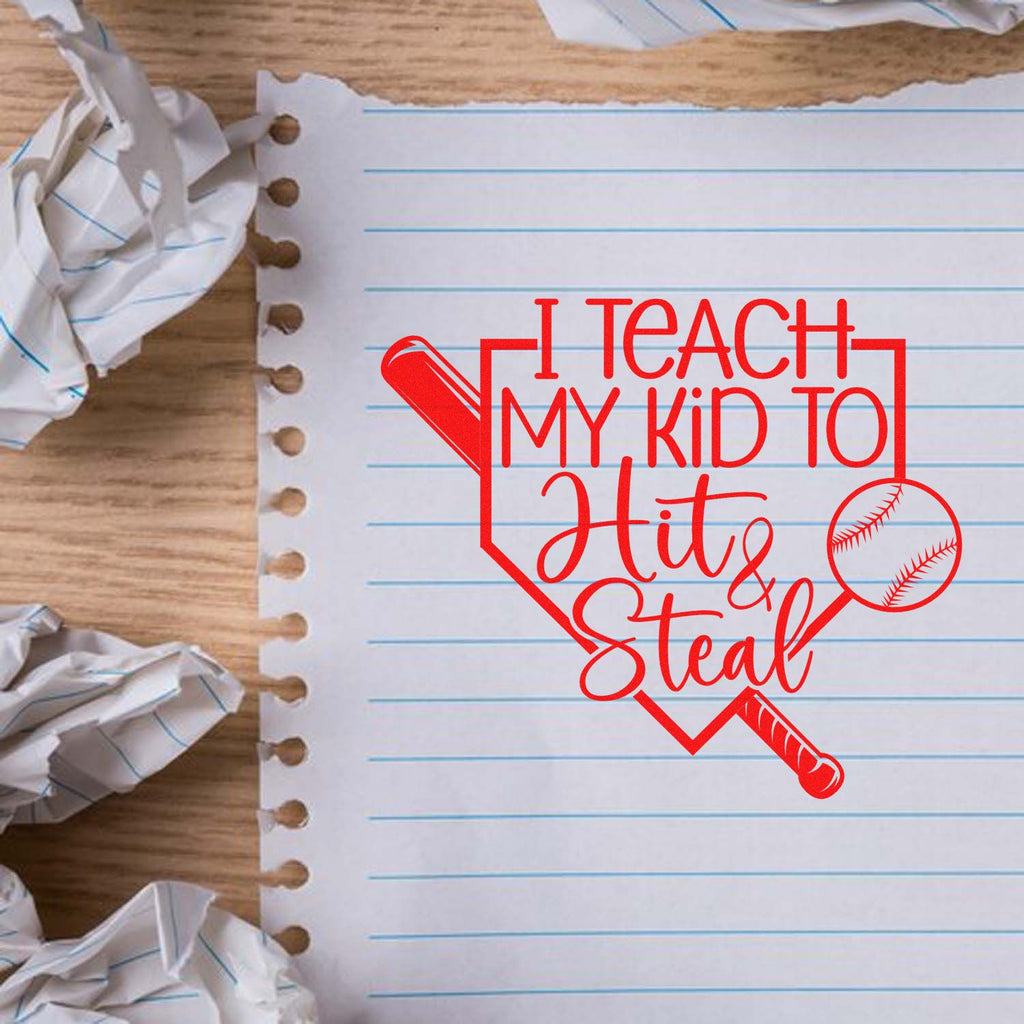 Compact yet powerful, the Shiny Duo features a modular build and a precision laser-cut rubber die for crisp, repeatable impressions every time. The 1-5/8" square face showcases a bold black-and-white frame with home plate, bat, and ball circling the playful line: “I teach my kid to hit & steal.” Use it as a youth baseball coaching stamp or a parent encouragement hand stamp to mark drills, plans, progress sheets, reward cards, and game-day notes. Separate ink pad required.
