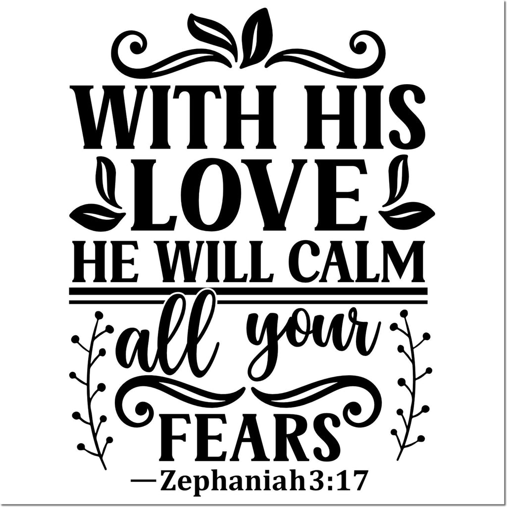 - Precision: Achieve crisp scripture every time: the precision laser-engraved rubber die creates sharp, detailed impressions of "With His love he will calm all your fears" in a chic black-and-white, leafy-letter motif that reads beautifully on multiple surfaces. Quick tip: press evenly and allow a second to dry on fabric or wood.