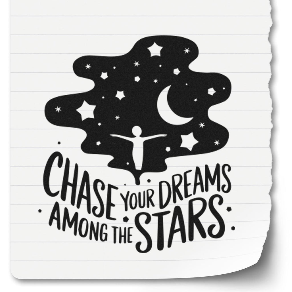 Set your plans in motion with the Duo Chasing Dreams Amid Midnight Starfield Hand Stamp—an inspiring 1-5/8" square design where a silhouetted dreamer reaches wide as a star-swept cloud pours a glowing crescent and constellations overhead, while playful hand-lettering cheers you to chase your dreams sky-high.