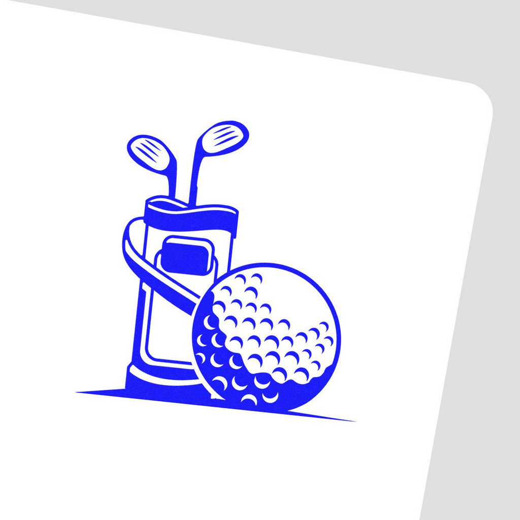 Solve it with the Shiny Duo: a 1-5/8" square custom stamp featuring a striking black-and-white silhouette of a golf bag and giant dimpled ball—sleek curves, shadowy dimples, and clubs standing at the ready. It’s a fun, polished mark that turns ordinary gear into your signature.