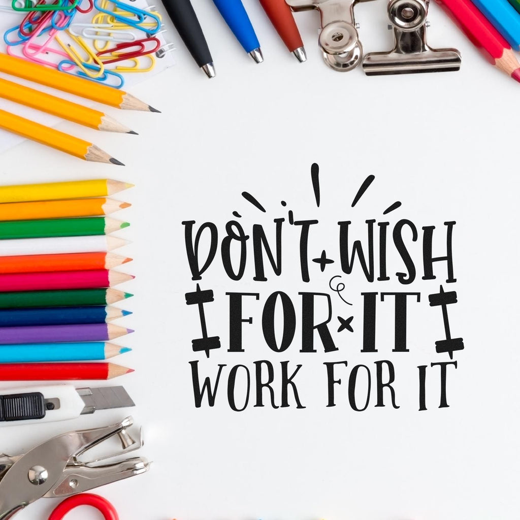 Why shop with ESS? Stop losing valuable time waiting for stamps. Our rapid delivery gets your precisely crafted tool to you fast, so you hit deadlines, delight customers, and keep momentum strong. Order the Duo “Don’t Wish, Work For It” Hand Stamp today and upgrade to reliable, professional stamping.