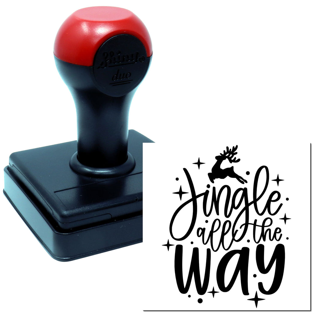 Enter the Shiny Duo — a modular 1-5/8" square reindeer hand stamp designed for pros and hobbyists. Its convenient cover keeps parts organized, the fungistatic handle stays cleaner longer, and the precision laser-cut rubber die captures every mischievous reindeer hop, swirling script “Jingle all the way,” twinkling stars and confetti dots with crisp, consistent detail. Compatible with water-based and permanent inks (ink pad sold separately), it’s durable, cost-effective, and built for repeat performances.