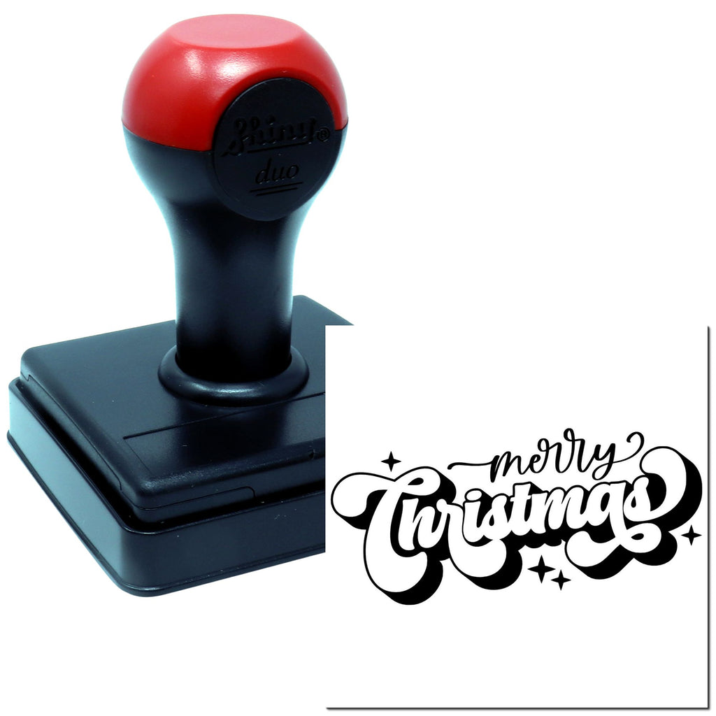 Wow — make every holiday package feel handmade and unforgettable with the Duo Festive Retro Script With Stars Hand Stamp, a 1-5/8" square festive retro script that curls “Merry Christmas” into whimsical loops surrounded by twinkling starbursts.