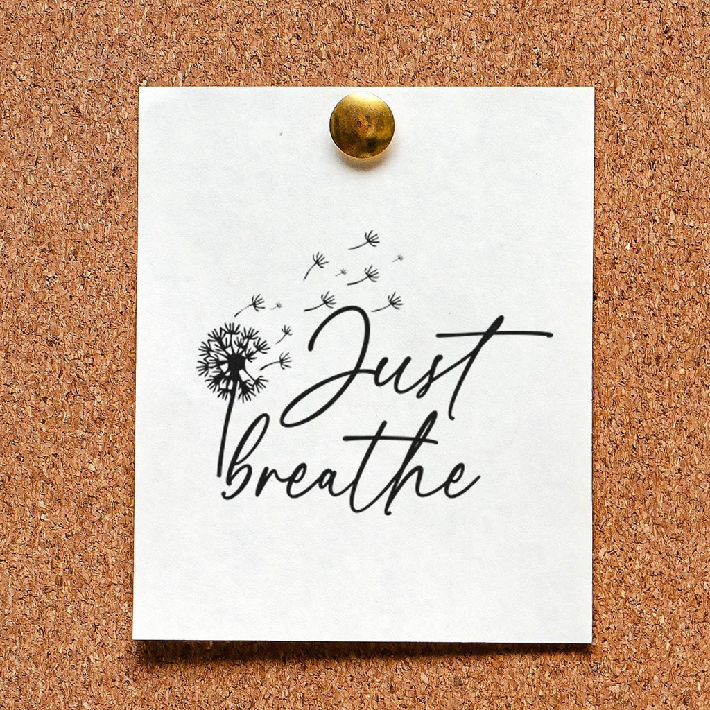- Calming: Transform anxious moments into mindful pauses—stamp a floating dandelion and the scripted “Just breathe” to create a tiny ritual on cards, journals, or notes that invites slow breaths and gentle reflection.