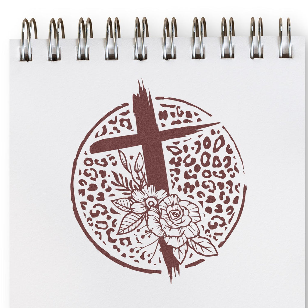Duo Leopard Cross With Floral Accent Hand Stamp Highlights and Features