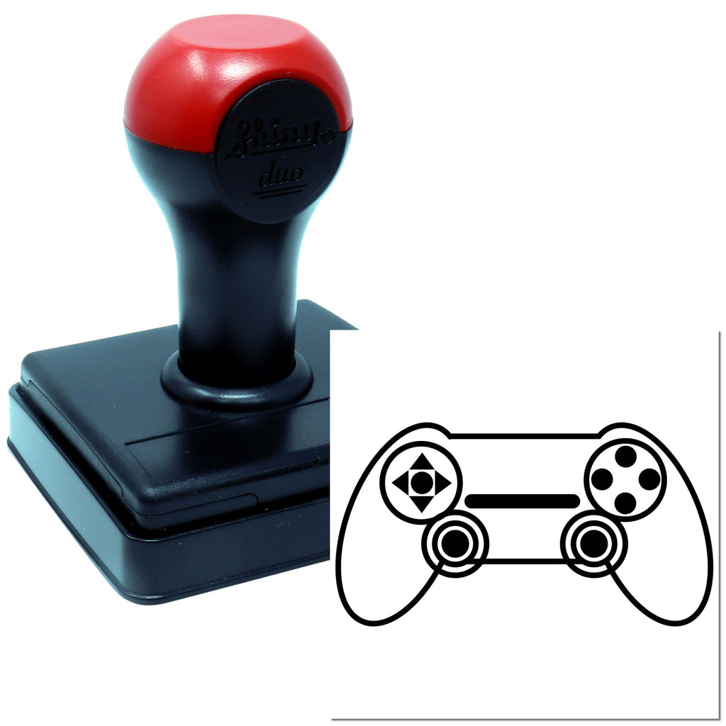 Meet the Duo Minimalist Dual Analog Game Controller Outline Hand Stamp (1-5/8" square). Built on the Shiny Duo platform for everyday use, it pairs a protective dust cover with built-in antimicrobial protection. A precision laser-etched die delivers ultra-crisp impressions with both industrial and water-based inks. Ink pad sold separately.