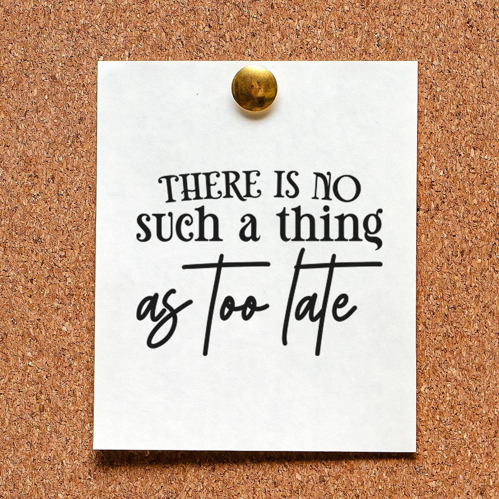 - Save time: Stop wrestling with uneven sentiments: stamp a consistent, uplifting “There’s no such thing as too late” across cards, tags, and pages in seconds; quick start tip: press evenly, lift straight up for flawless impressions every time.