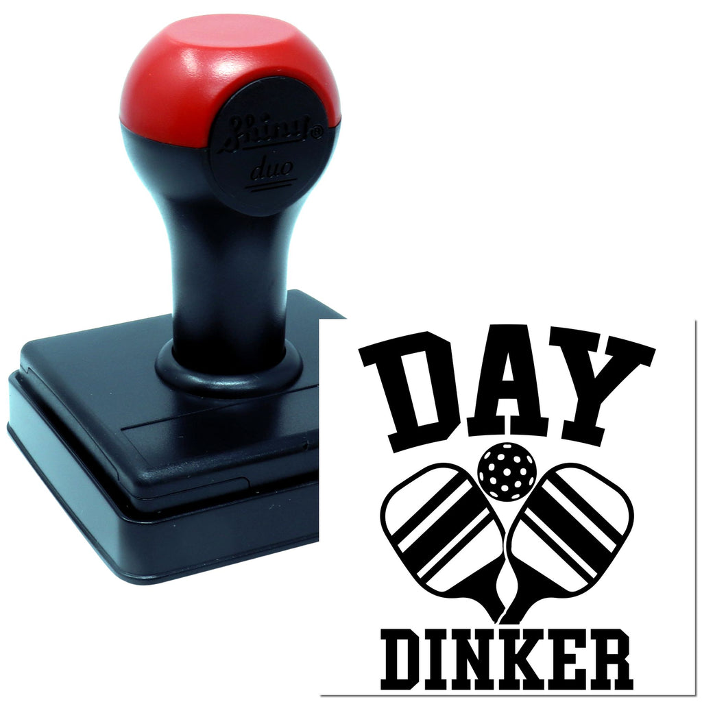 Design that pops: a bold varsity font above two crossing paddles with a dotted ball between, plus DINKER for sunny-court energy and instant pickleball vibes. perfect as a custom pickleball packaging stamp or a club branding tool.