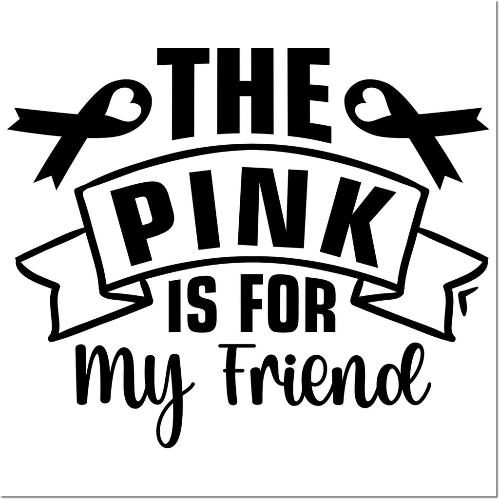 Meet the Duo Pink Ribbon For My Friend Hand Stamp—the fast, heartfelt way to brand donor thank-yous, auction tags, envelopes, and signage with pride and clarity. A bold graphic proclaims “THE PINK IS FOR My Friend,” framed by festive banners and sweet heart-cutout ribbons, blending chunky blocks with playful script for a joyful, unmistakable tribute.
