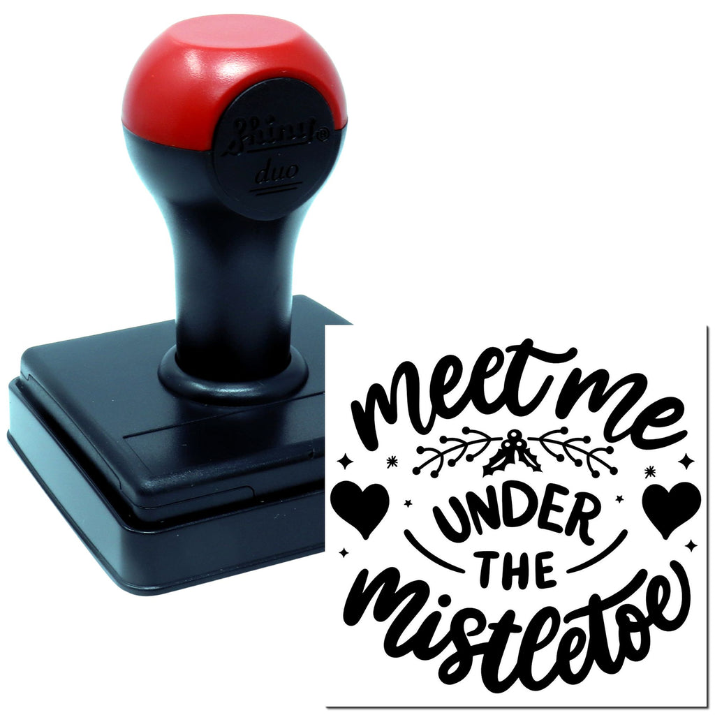 Imagine the after: your envelopes, gift tags, and boxes stamped with a crisp little scene—two cozy hearts under holly and stars with the playful script “Meet me under the mistletoe”—and every recipient smiling before they even open it. That instant charm turns casual buyers into repeat customers and handmade cards into keepsakes.