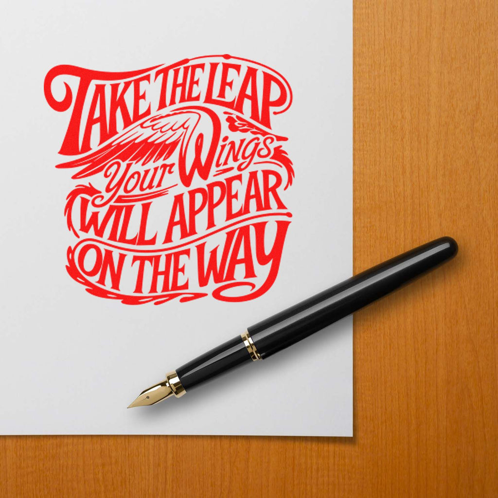 Duo Take The Leap Inspirational Winged Typography Hand Stamp Highlights and Features