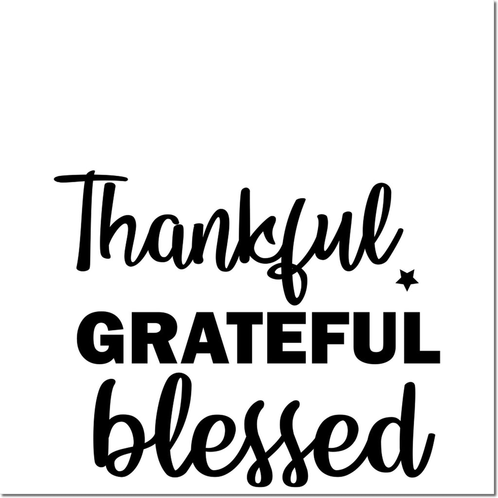 A chic black-and-white “Thankful • Grateful • Blessed” in three playful fonts—swoopy script meets bold block—adds cozy energy to seasonal displays or everyday corners. Sized at 1-5/8" square, it’s small enough for tags and labels, yet bold enough to anchor a gallery wall.