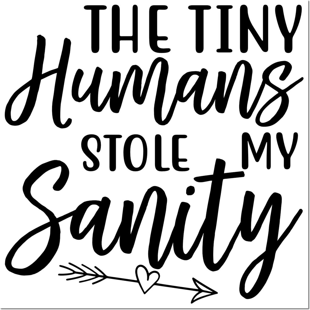 Design you’ll love: bold, hand-lettered “Tiny Humans Stole My Sanity” in playful black-and-white with a sweet arrow-and-heart accent—cheeky enough to grin, clear enough to guide.