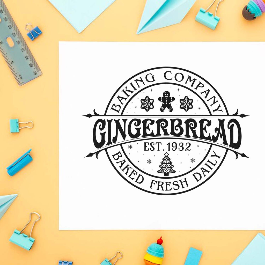 Imagine plain kraft bags transformed by a cheerful vintage seal shouting “Gingerbread,” framed by jolly cookies, sparkling snowflakes, a festive tree, and stamped “Baking Company – Est. 1932.” Now picture customers recognizing that mark in photos, on labels, and at your counter—and trusting what’s inside before they even taste it.