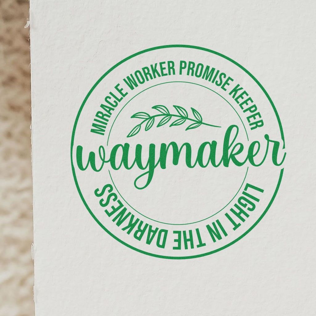Nail your message of hope in every handout, tag, and takeaway with the Duo Waymaker Miracle Worker Promise Keeper Hand Stamp—built on the Shiny Duo for everyday reliability and crisp, consistent impressions that honor your mission. The 1-5/8" square, premium engraved die showcases a vibrant badge above “waymaker” in lively script, framed by a cheerful sprig and bold claims of miracle worker and promise keeper—a playful symbol of light that shines even in the darkest times. Ink pad sold separately.