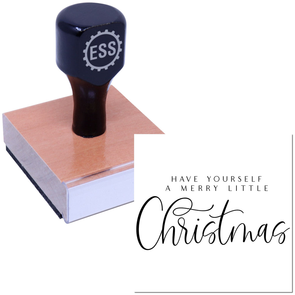Perfectly sized at 1-5/8 square inches, this stamp delivers bold, elegant impressions every time. Its minimalist design features black lettering on a crisp white background, reading “Have Yourself a Merry Little Christmas” in a flowing cursive and uppercase font. A timeless holiday greeting that spreads warmth and cheer.