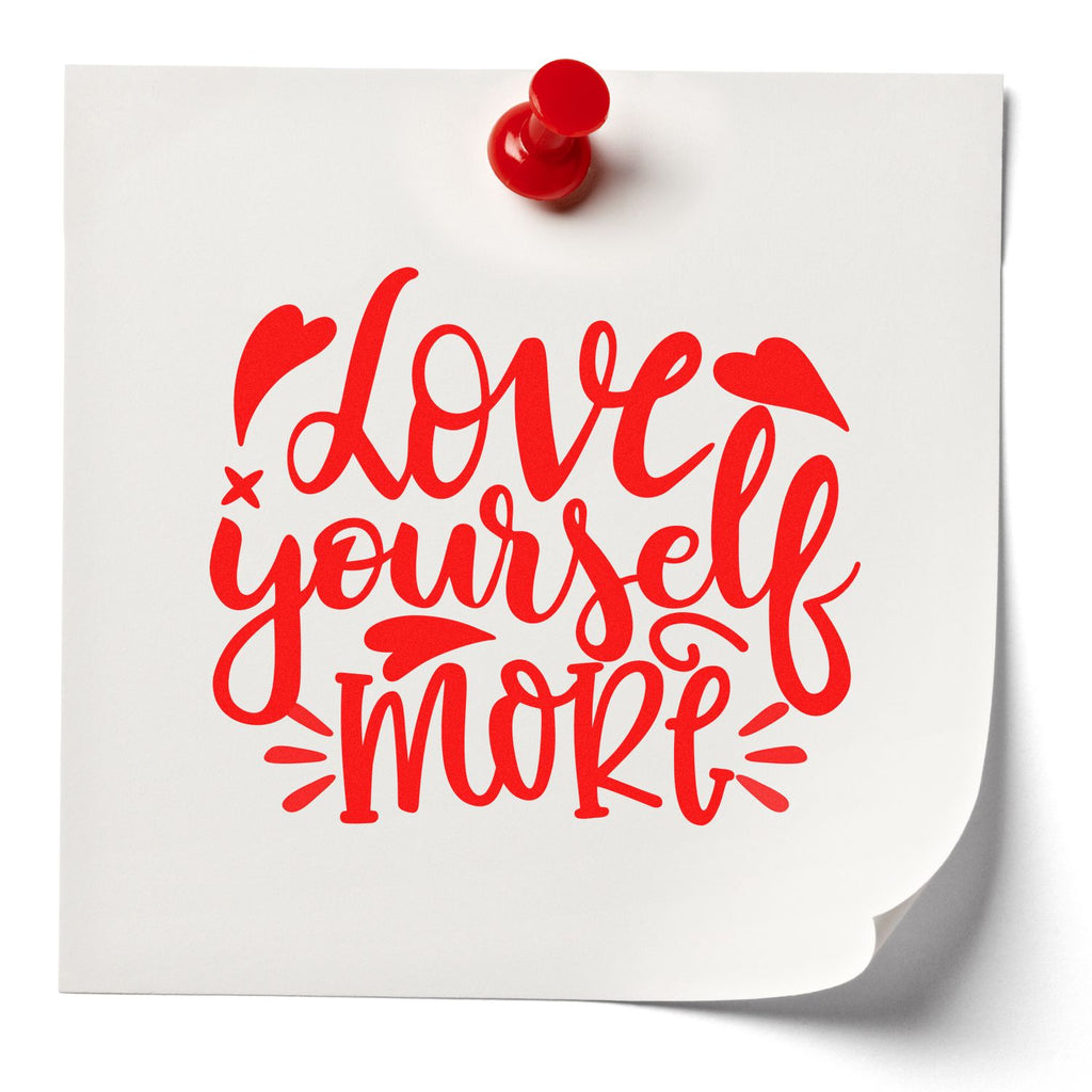 Linger on the idea that every page deserves a bold, confident message—Love yourself more—stamped clean and stylish with this essential tool.