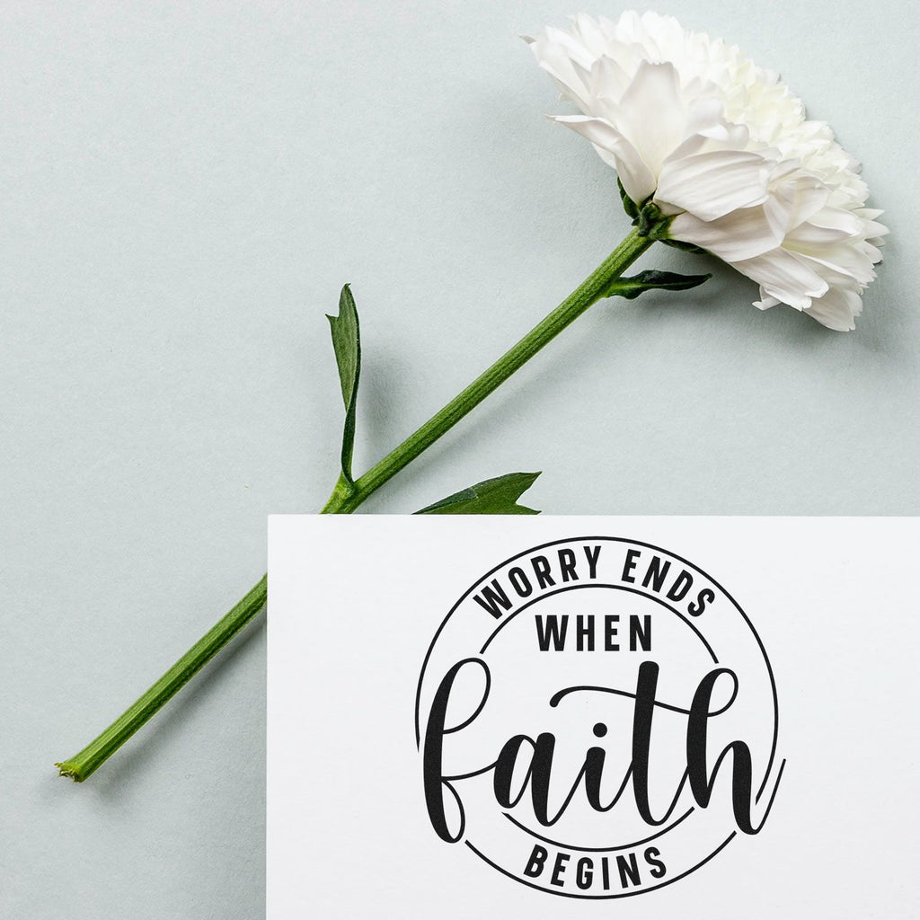 Faith Over Worry Place Card Rubber Stamp Highlights and Features
