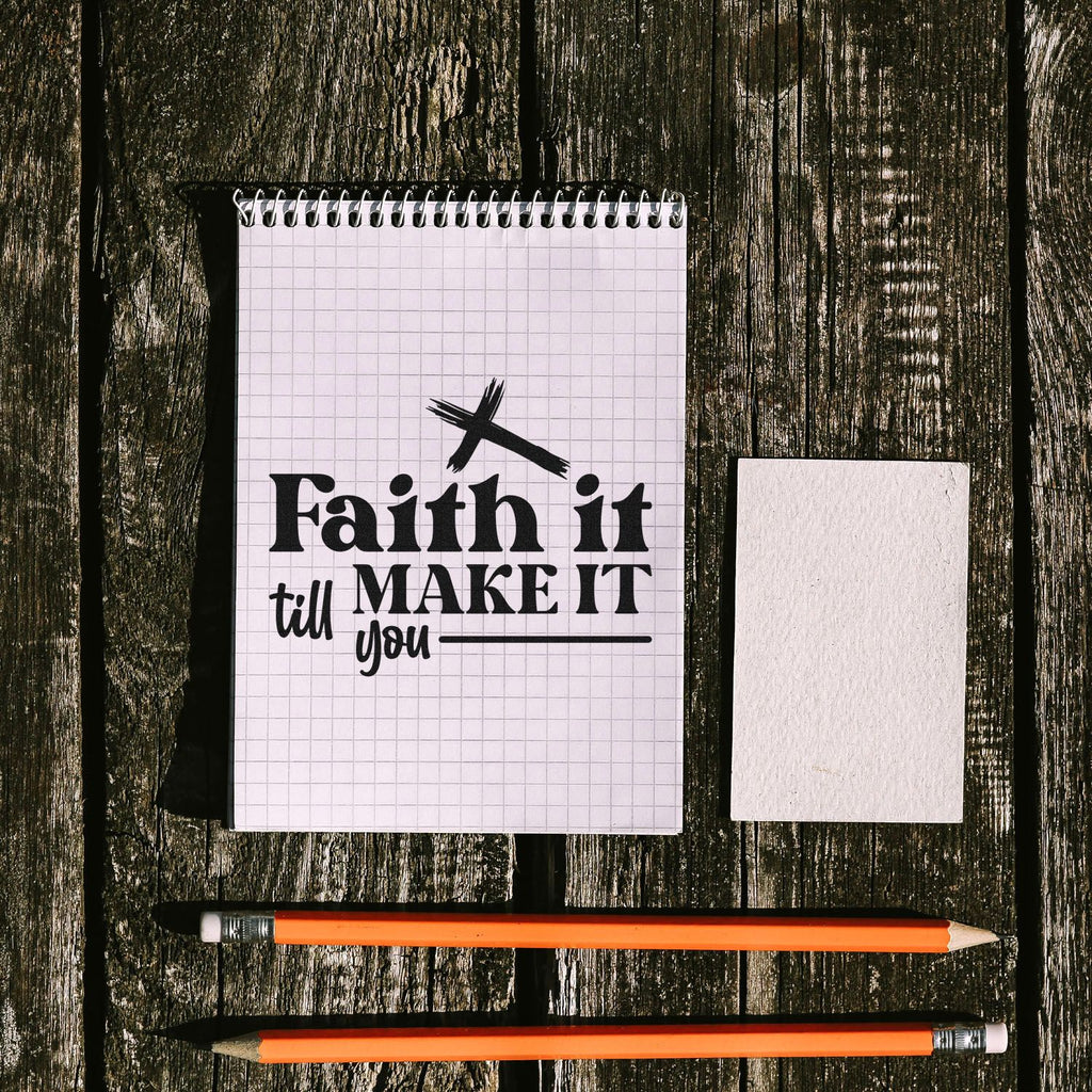 - Create: Eye-catching design—bold black cross above “Faith” with mixed cursive/block “till you make it you” and a finishing line—adds a meaningful focal point to prayer lists, victory timelines, and devotional layouts.