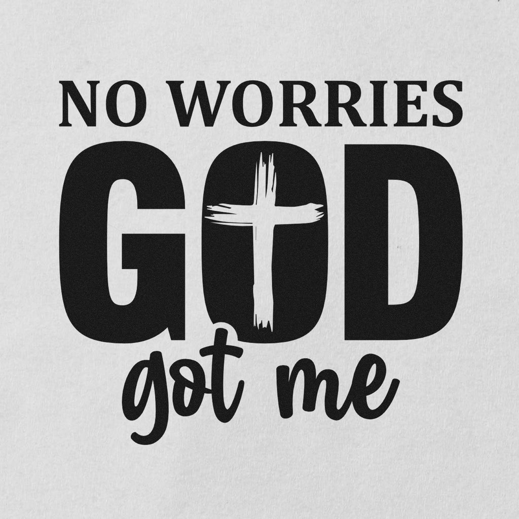 - Design-impact: Bold “GOD” with the hand-painted cross “O,” plus “NO WORRIES” and casual “got me” script creates an eye-catching, faith-filled focal point that connects emotionally with recipients.