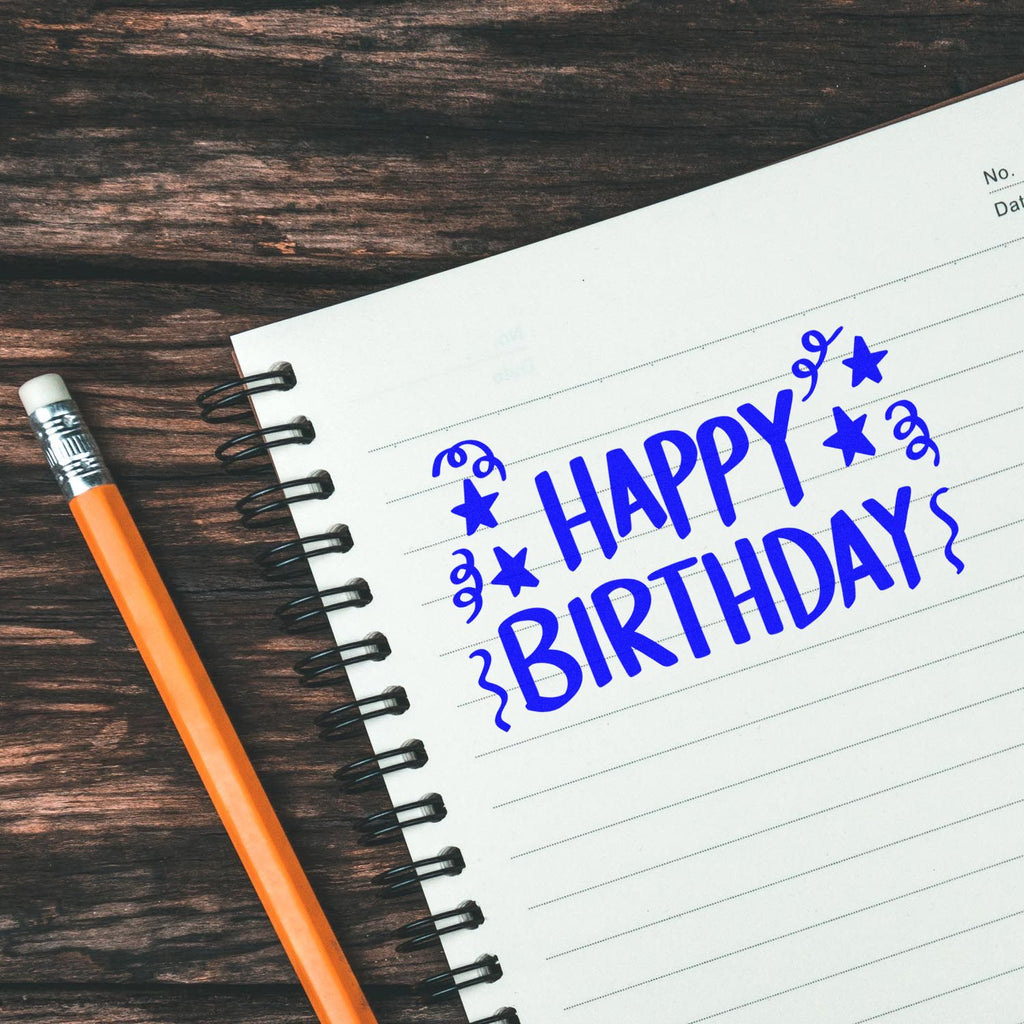 - Create cohesion: bold black hand-lettered “HAPPY BIRTHDAY” center with stars and streamers gives every project a playful, professional focal point that ties pages and party pieces together.