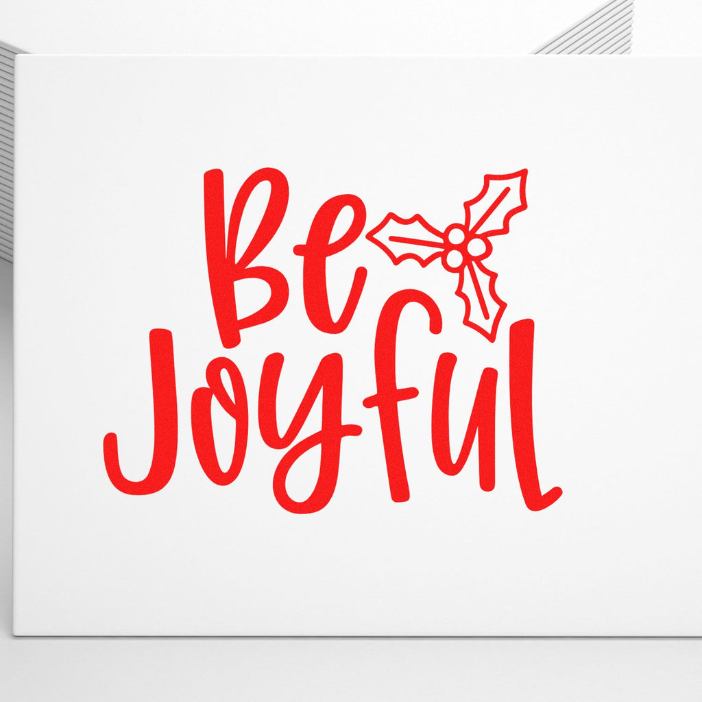 Lively 1-5/8" square Festive Holly Joy Party Favor Rubber Stamp puts a bold "Be Joyful" hand-lettered message and a cheery holly sprig on every tag, bag, and card for instant seasonal impact.