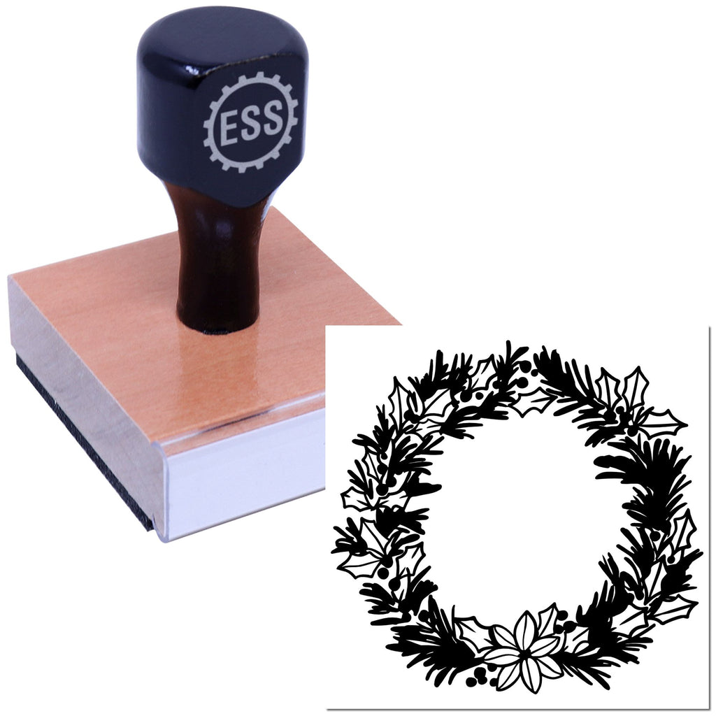 Festive Holly Wreath Note Card Rubber Stamp Highlights and Features
