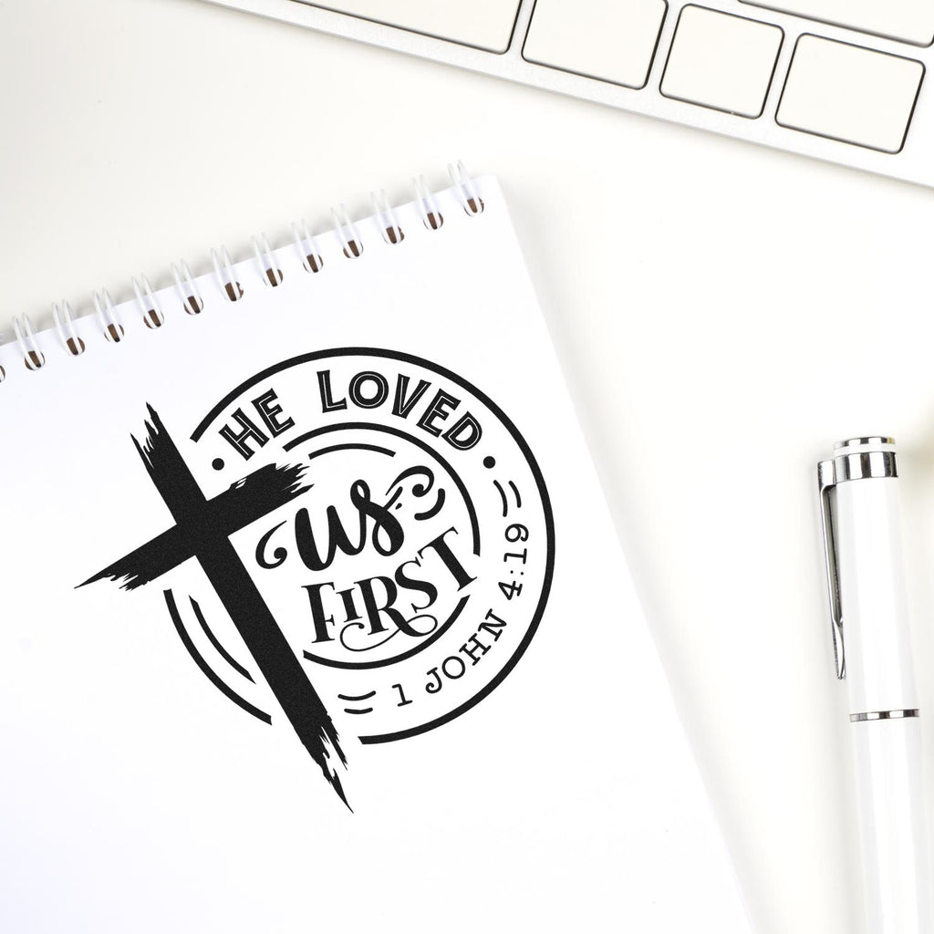 - Meaningful: Bold brushstroke cross and “He loved us first” (1 John 4:19) design adds a modern, devotional touch that elevates the tone of your religious event.