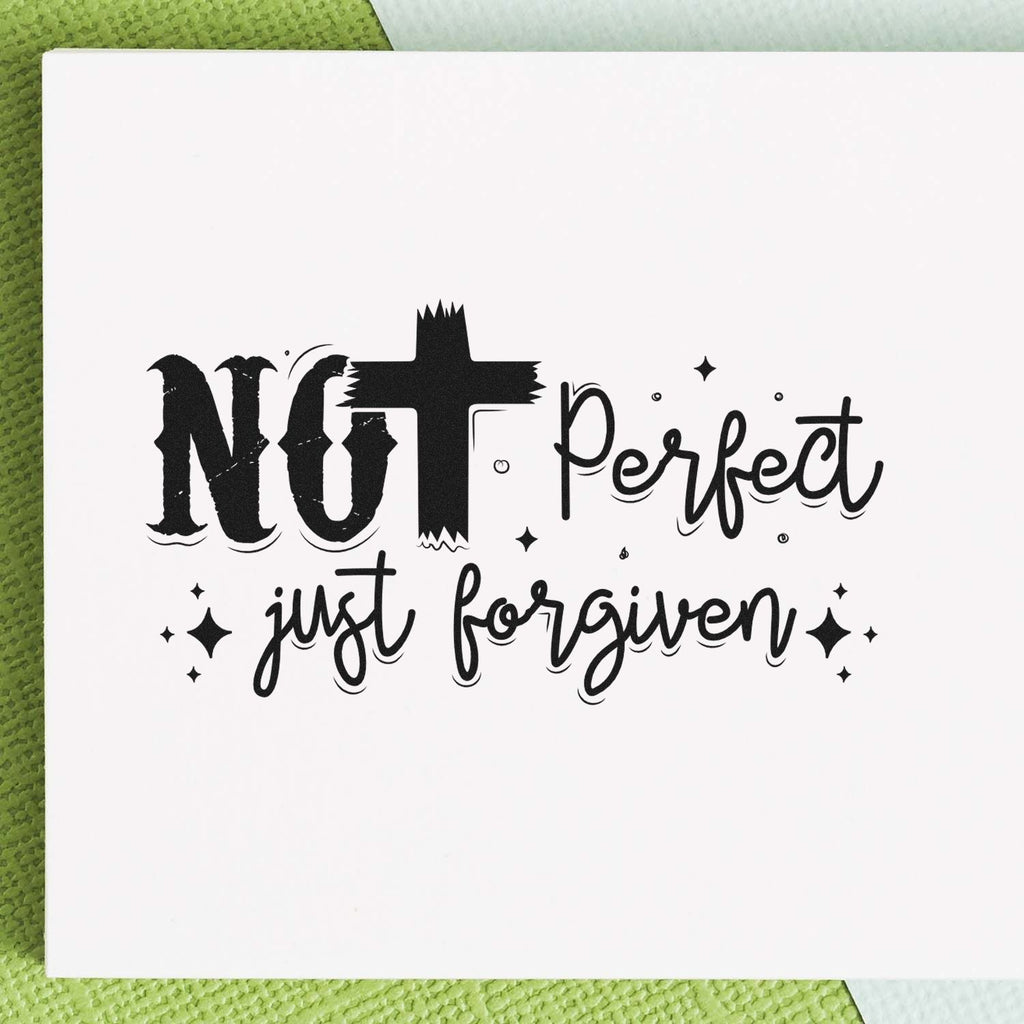 - Message: Bold “Not Perfect” brush-stroke cross paired with flowing “just forgiven” cursive delivers a clear, faith-forward statement that resonates with recipients.