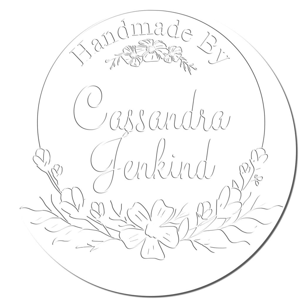 Unleash your creativity and elevate your craft with the Floral Artisan Seal Desk Personalized Embosser, a must-have tool for any floral artisan or craft enthusiast. This exquisite embosser is designed to add a personalized, professional touch to your handmade stationery, invitations, and more. With a chic 1-5/8" round design, it features a sophisticated circular format adorned with a subtle floral theme, making it the perfect handmade gift tag embosser or handmade business seal.