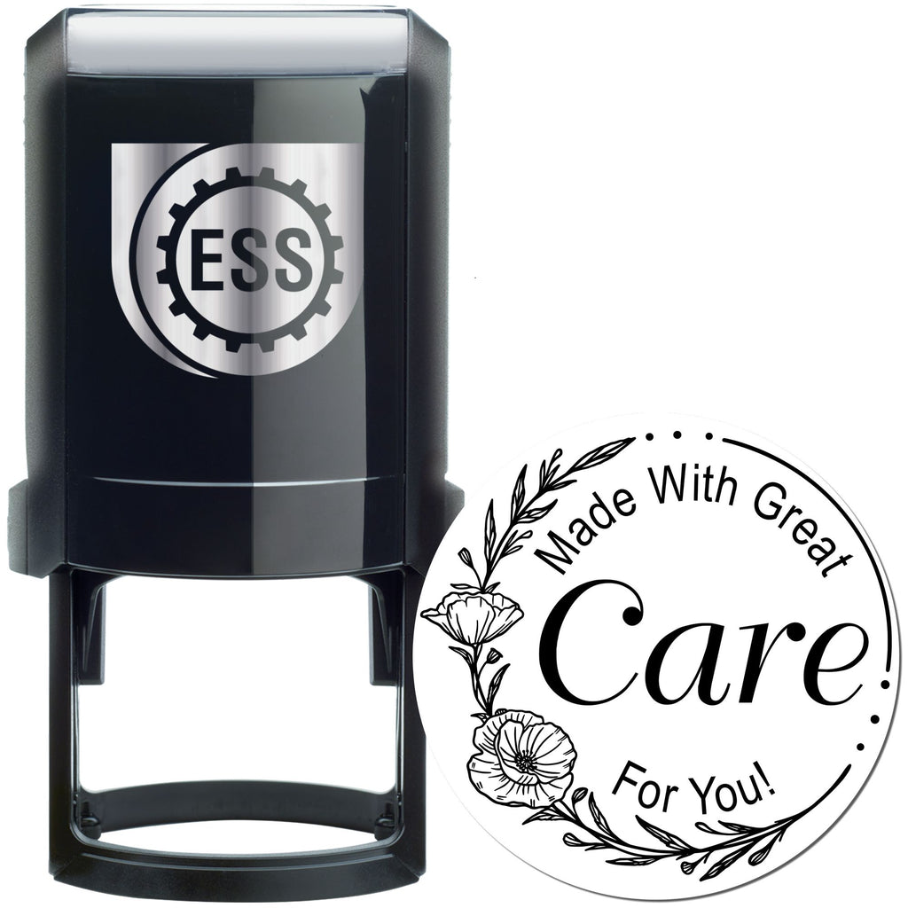 Unleash your creativity with our Floral Care Stamp Personalized Handmade Stamp, the perfect tool for crafters and DIY enthusiasts! This exquisite 1-5/8" round stamp features a charming design of delicate flowers and leaves, encircling the heartfelt message "made with great care for you!" The word "care" is prominently displayed in bold, making it the centerpiece of your personalized creations. Whether you're crafting handmade cards, scrapbooks, or personalized gifts, this stamp adds a touch of elegance and love to every project.