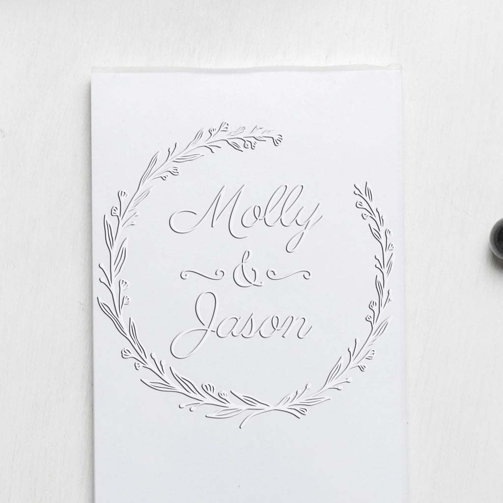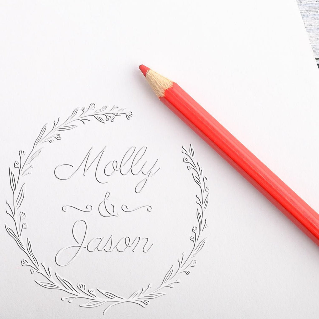 - ELEVATE YOUR INVITATIONS: Transform your wedding stationery into a masterpiece with our Floral Elegance Hybrid Custom Initial Embossing Stamp. Perfect for adding a personal touch to your invites, this 1-5/8" round stamp features a chic botanical wreath design that exudes romance and sophistication. Make your invitations unforgettable!
