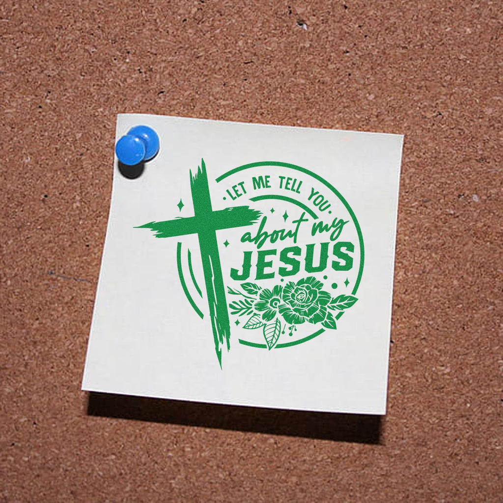 - Instantly: Add devotional focus to any page with a 1-5/8" square Floral Faith Cross that stamps a bold brushstroke cross, mixed-font “LET ME TELL YOU about my JESUS” circle, and delicate floral cluster—perfect focal points for Bible journaling and faith projects.
