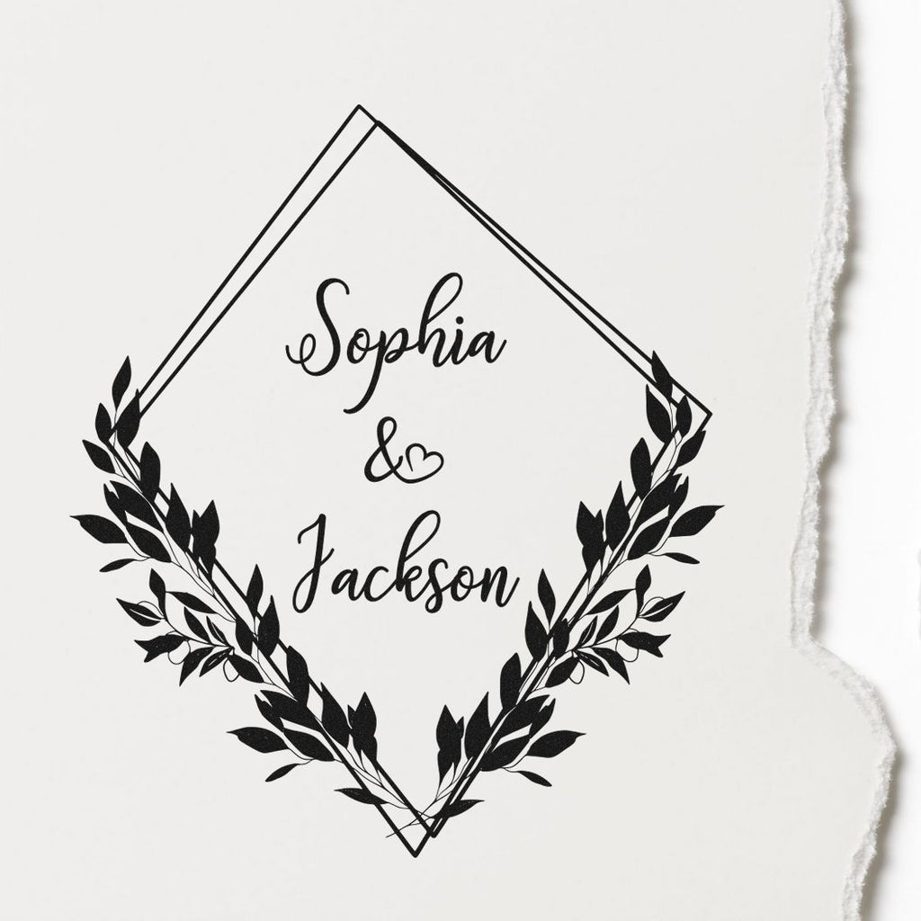 - PERSONALIZED ELEGANCE: Elevate your stationery with the Floral Grace Custom Name Stamp, featuring a chic diamond frame and elegant cursive script. Perfect for adding a personal touch to wedding invites, thank-you notes, and more.
