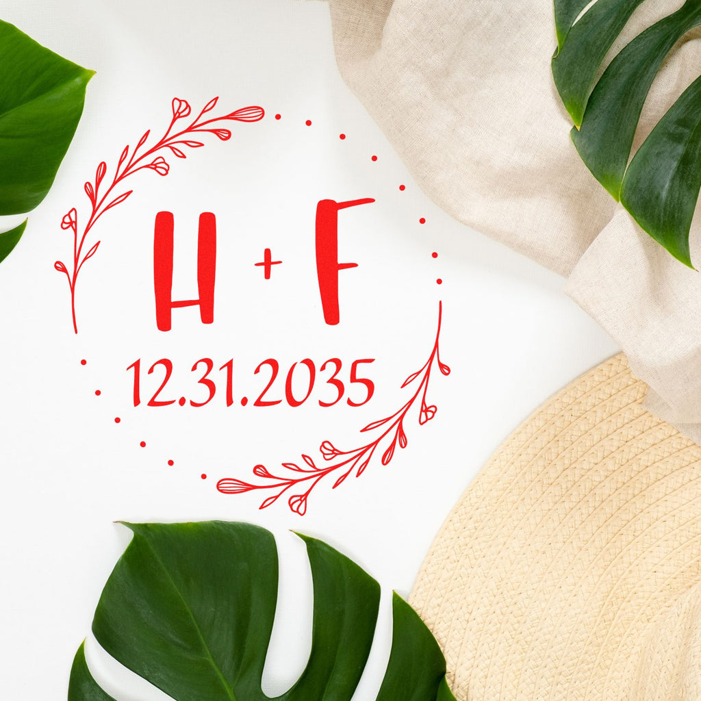 - PERSONALIZE WITH ELEGANCE: Create lasting memories with our 1-5/8" round floral initial stamp, featuring your custom initials and wedding date surrounded by delicate hand-drawn florals. Perfect for wedding invitations and thank you cards.