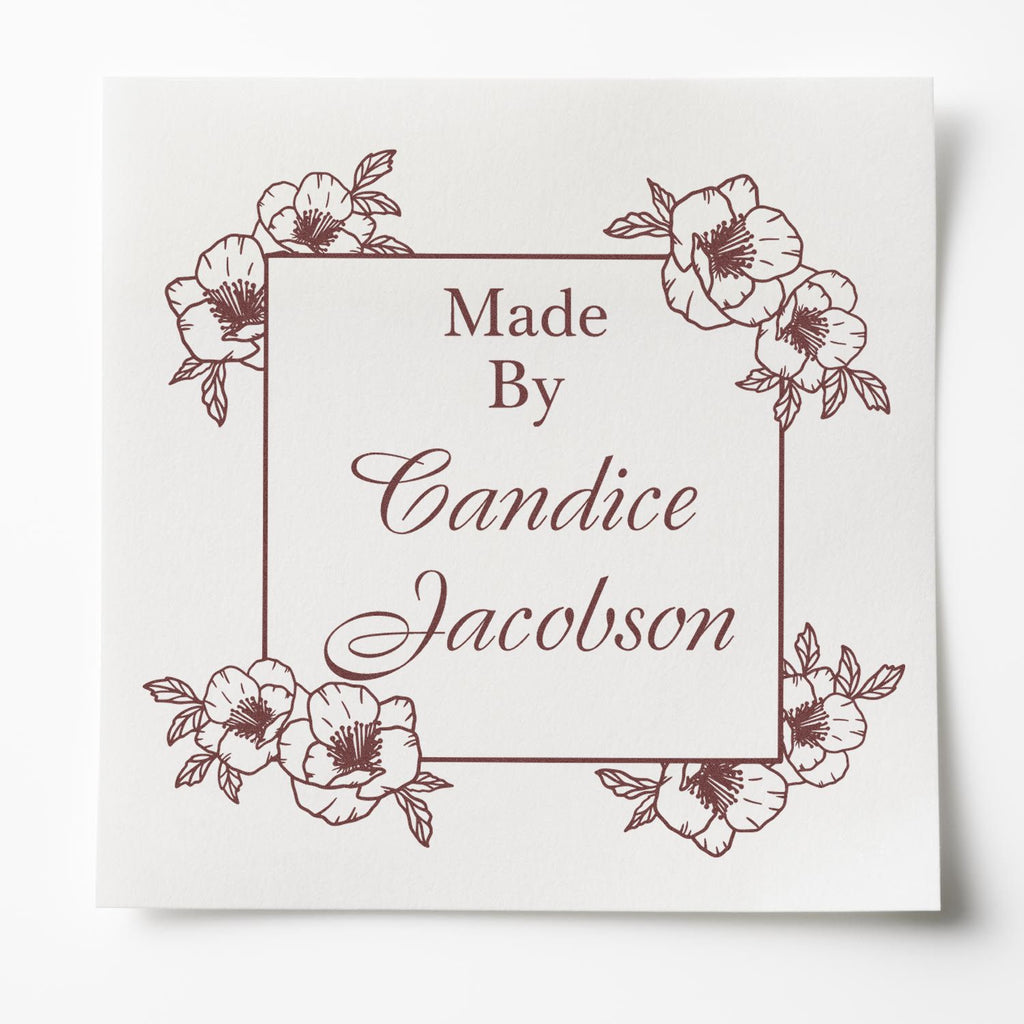 - PERSONALIZED ARTISAN BRANDING: Transform your handmade creations with our elegant 1-5/8" square floral signature stamp, featuring your custom name in flowing script. Perfect for product tags, packaging, and business cards.