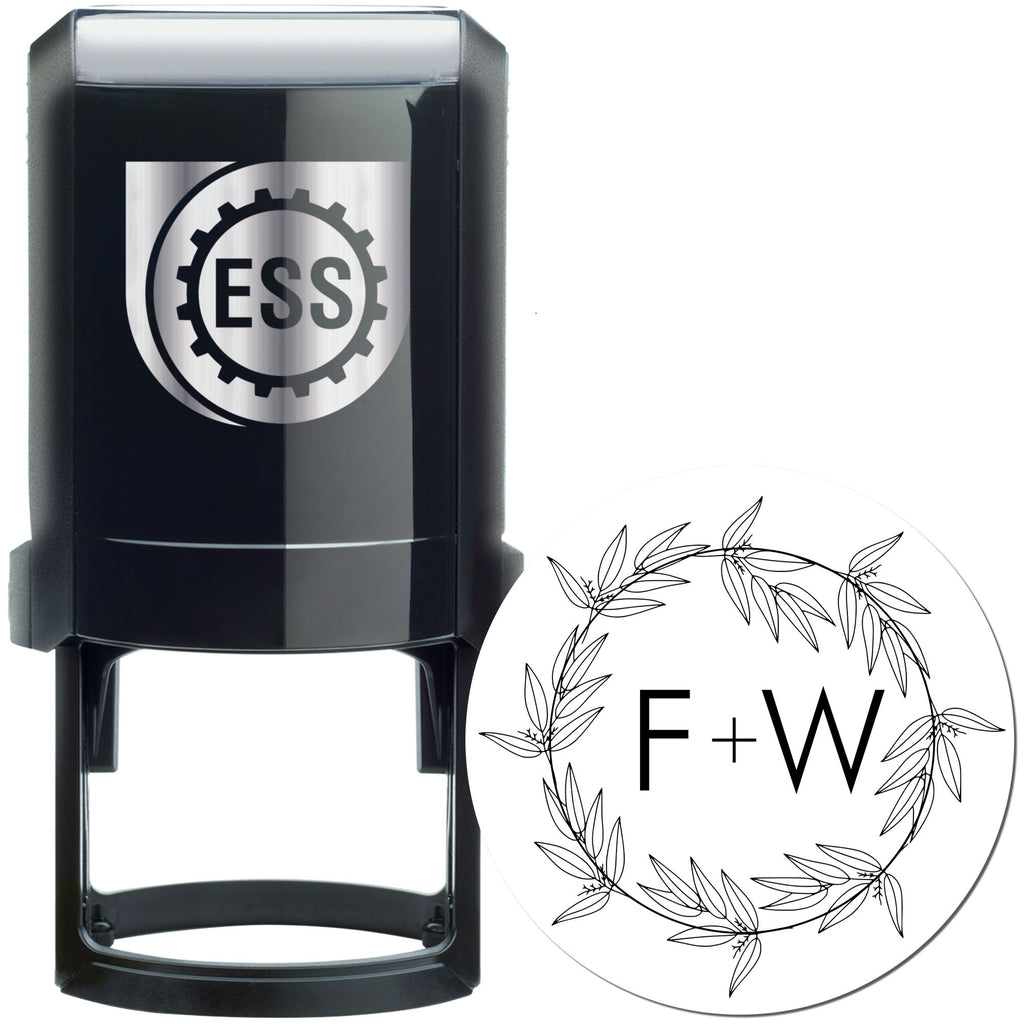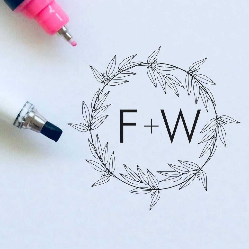 Effortless Impressions, Unmatched Style! Introducing our Easy Press and Print Stamping solution – where simplicity meets sophistication! This exquisite stamper is designed to add a personal touch to your wedding invitations, thank you cards, and more. With a simple yet elegant design, it features a hand-drawn circle of delicate leaves encasing the initials "f + w" in a modern, stylish font. Perfect for engaged couples or newlyweds, this stamper is a must-have for your wedding stationery needs.
