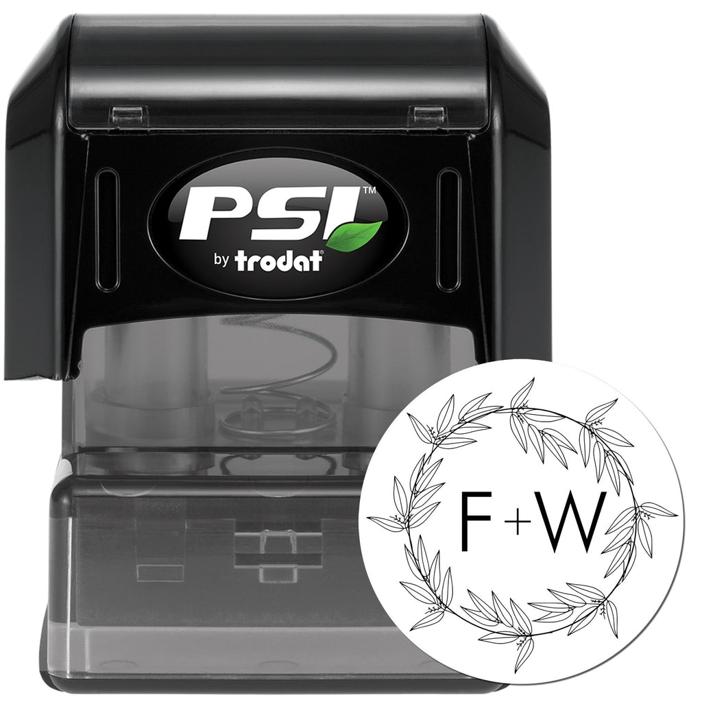 Make your mark with our premium 1-5/8" round pre-inked stamp, featuring a stunning circular wreath design that delicately frames your chosen initials. This sophisticated stamper combines timeless elegance with modern functionality, perfect for adding that personal touch to your wedding invitations, thank you cards, and more.
