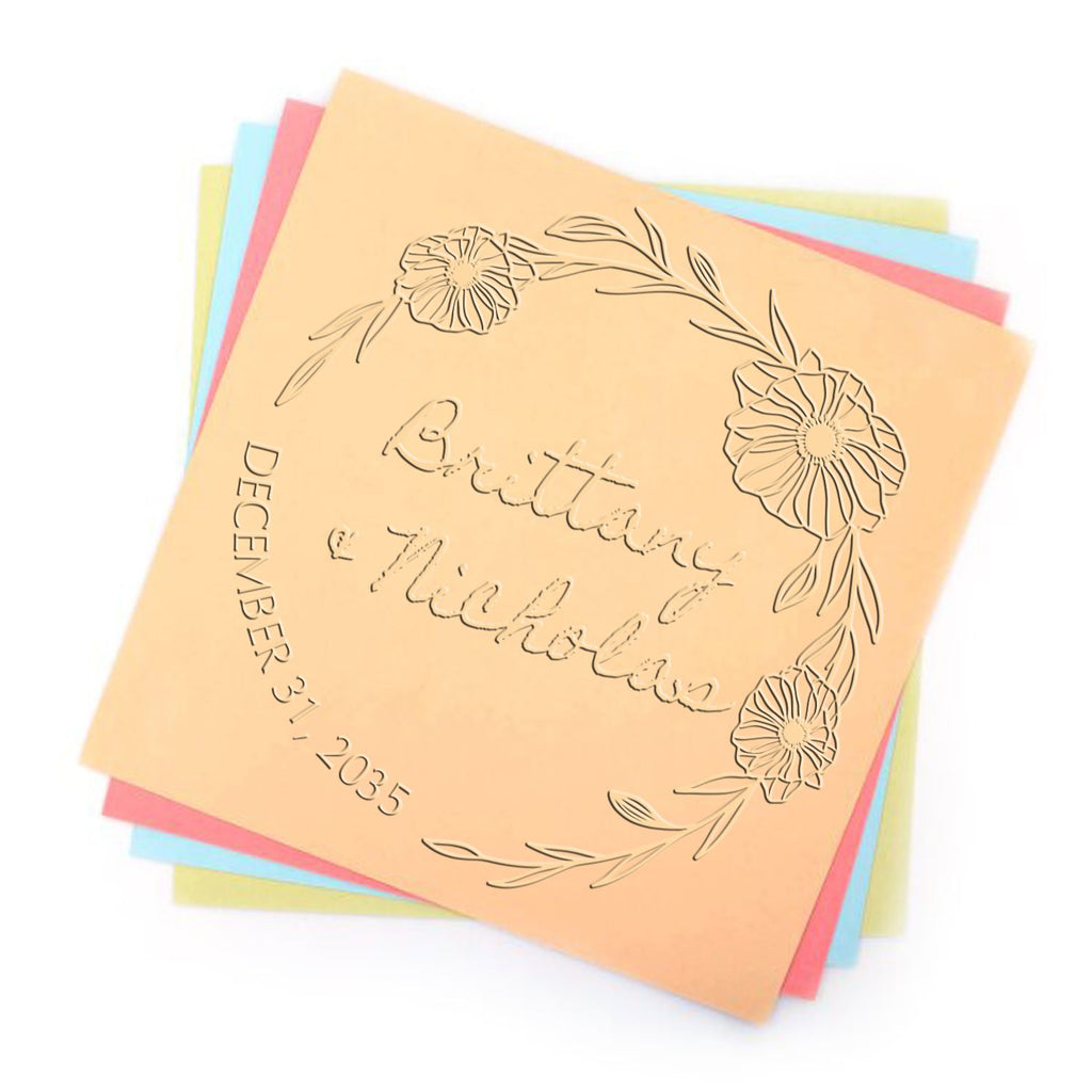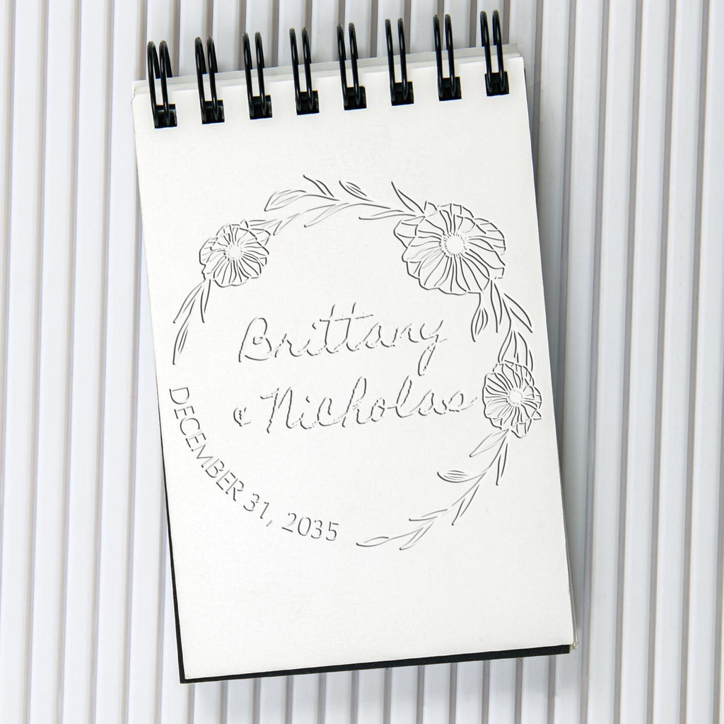 - MODERN DESIGN: Featuring a hand-drawn floral wreath and elegant script, this wedding embosser blends nature's beauty with contemporary style. Perfect for creating memorable, stylish stationery.