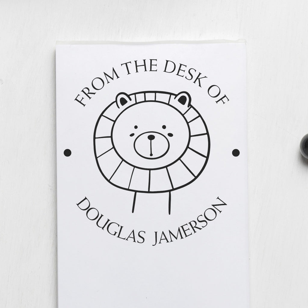 Featuring an adorable lion design with a fluffy circular mane and charming cartoon features, this 1-5/8" custom-made stamp brings personality to every impression. The simple yet engaging illustration captures young minds while maintaining professional appeal - perfect for adding a touch of whimsy to student work!